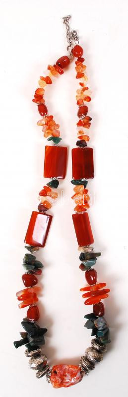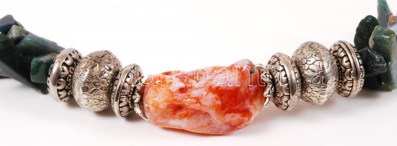 Beschreibung: Karneol nyakék natúr és csiszolt kövekből mohaachát díszítéssel.