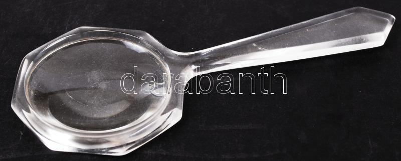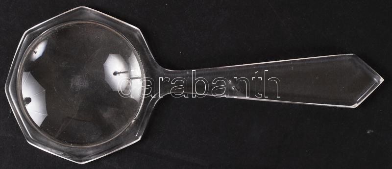 Beschreibung: Műanyag nagyító, a nagyítórész középen karcolással, h: 16 cm, d: 5 cm