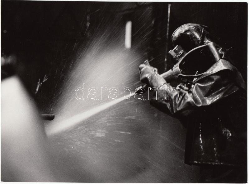 1975 Féner Tamás (1938-): Öntvénytisztító, jelzetlen, bemutatva a Magyarország ma című fotókiállításon 1975-ben, a Magyar Munkásmozgalmi Múzeumban; 18x24 cm
