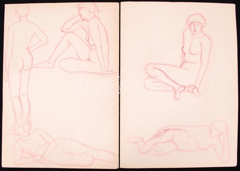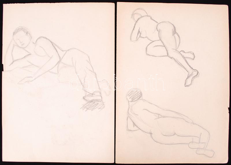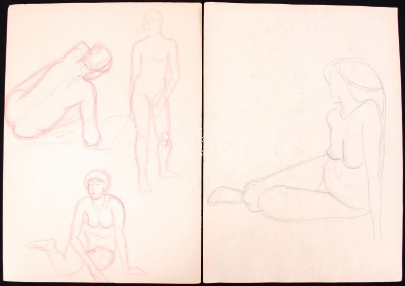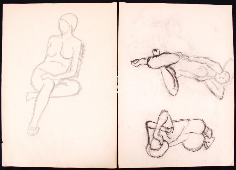 Beschreibung: Aktokat és figurákat ábrázoló ceruza rajzok, jelzés nélkül, összesen 8 db, 43×30 cm