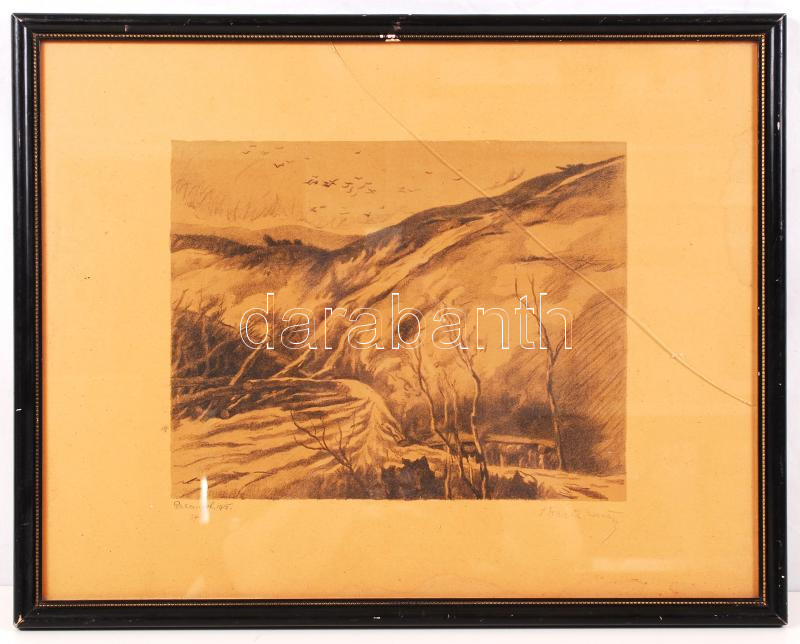 Beschreibung: Barta Ernő (1878-1956): Przemysl 1915. Litográfia, jelzett, üvegezett keretben, 40x50cm (üveg törött)