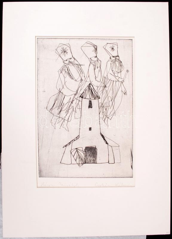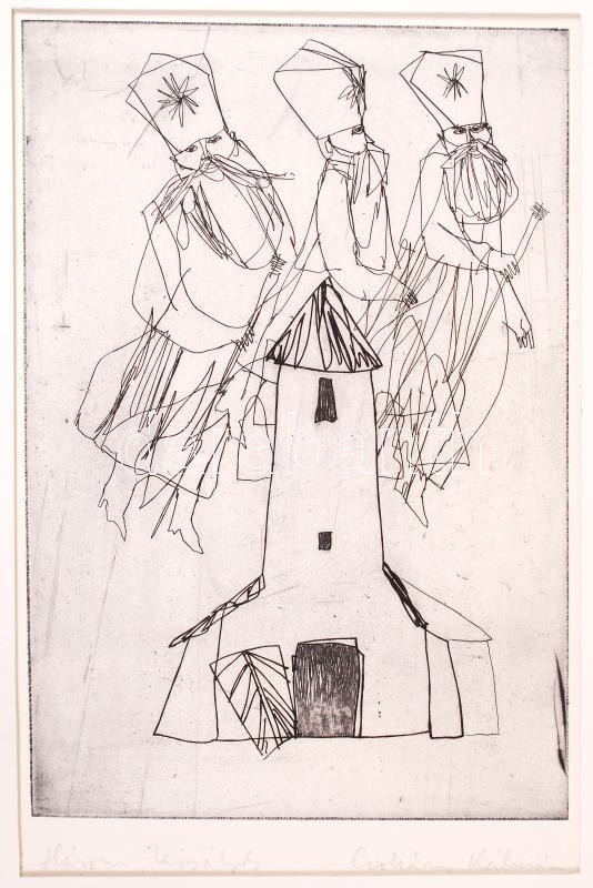 Beschreibung: Csohány Kálmán (1925-1980): Három királyok. Rézkarc, papír, jelzett, paszpartuban, 30×20 cm