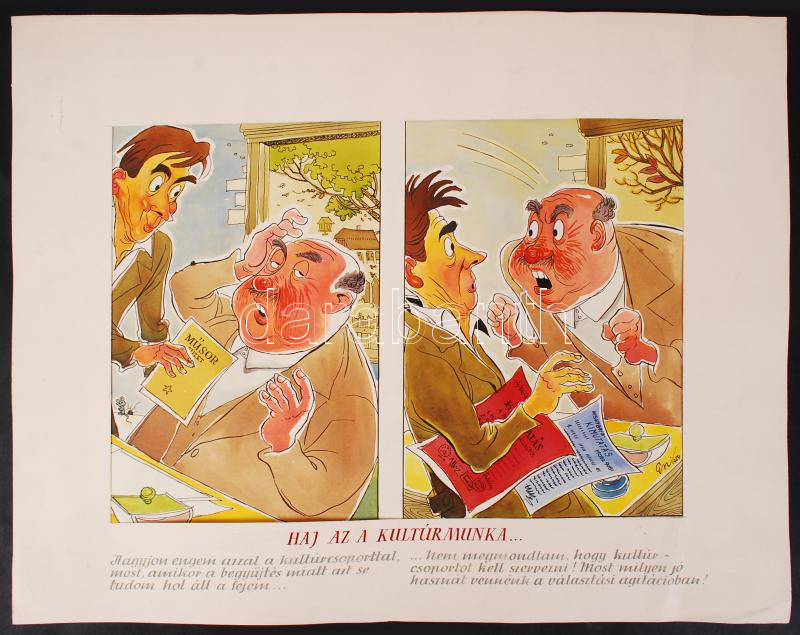 Endrődi István (1920-1988): Haj az a kultúrmunka... Papír, akvarell, j... https://www.darabanth.com/de/202-Fernauktion/202.0/Andere-Sammelgebiete/Gemalde-und-Grafiken~200003/Endrodi-Istvan-1920-1988-Haj-az-a-kulturmunka-Papir-akvarell-jelzett-kartonra-kasirozv~II803977