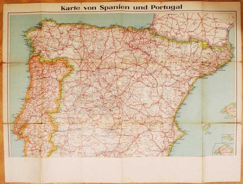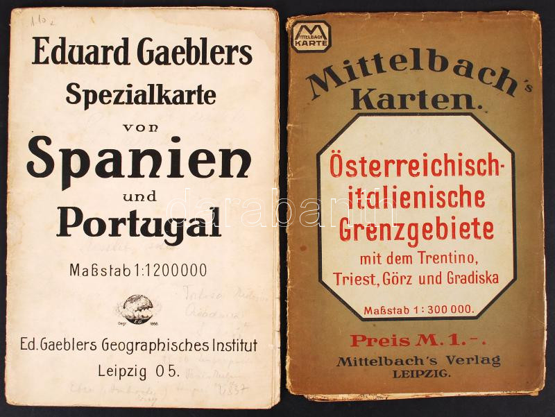 2 db német nyelvű térkép / 2 maps (Spain and Portugal)-Österreichisch-italienische Grenzgebiete mit dem Trentino, Triest, Görz und Gradiska (Osztrák-olasz határterület-Tirol, Trieszt, Görz, Gradiska), 102x74 cm; Eduard Gaeblers Spezialkarte von Spanien und portugal(Eduard Gaeblers-féle térkép Spanyolországról és Portugáliáról), 96x72 cm