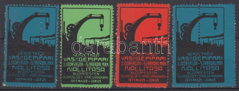 Beschreibung: 1911 Nemzetközi Vas- és Gépipari Újdonságok és Szabadalmak Kiállítása Budapesten 4 db levélzáró