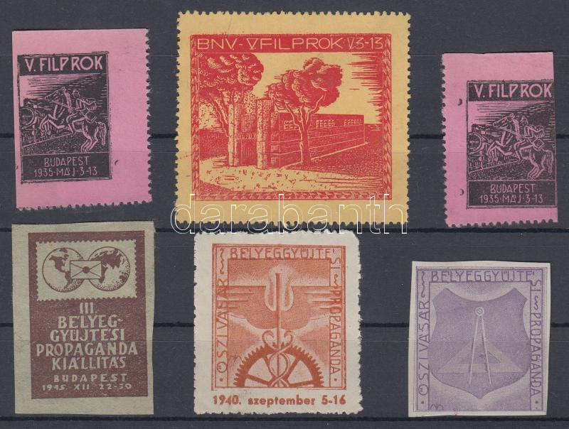 Beschreibung: 1935-1945 Bélyeggyűjtési propaganda 6 db levélzáró