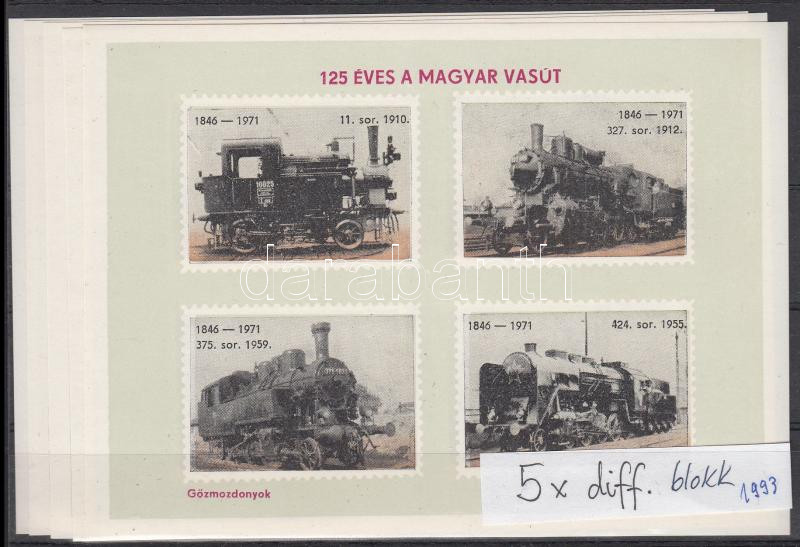 Beschreibung: 5 db 125 éves a magyar vasút levélzáró