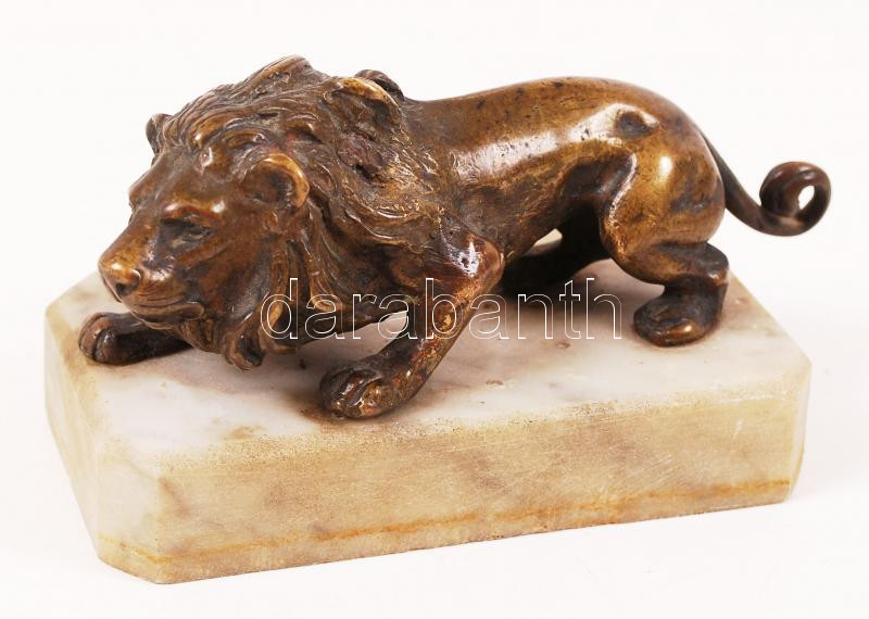 Lopakodó oroszlán, bronz, alabástrom talapzaton, m:5 cm, h:12 cm https://www.darabanth.com/de/202-Fernauktion/202.0/Andere-Sammelgebiete/Skulpturen-Statuetten-Plaketten~200010/Lopakodo-oroszlan-bronz-alabastrom-talapzaton-m5-cm-h12-cm~II801751