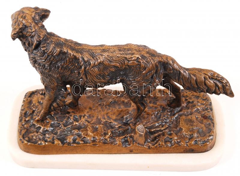 Beschreibung: Tömör bronz kutya szobor márvány talapzaton / Bronze dog statue 30x20 cm