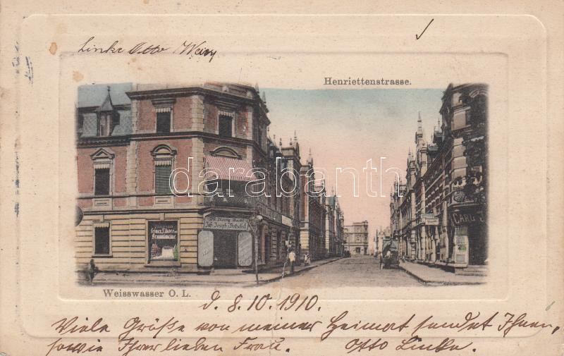 Weisswasser, Henriettenstrasse, shops (fa) https://www.darabanth.com/de/202-Fernauktion/202.0/Ansichtskarten/Deutschland~600117/Weisswasser-Henriettenstrasse-shops-fa~II731295