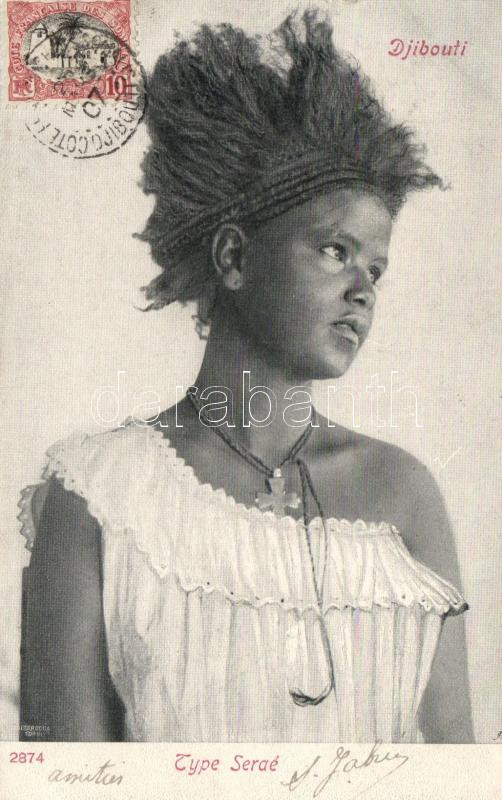 Djibouti folklore, Type Serae (small tear) https://www.darabanth.com/de/202-Fernauktion/202.0/Ansichtskarten/Folklore~600033/Djibouti-folklore-Type-Serae-small-tear~II801441