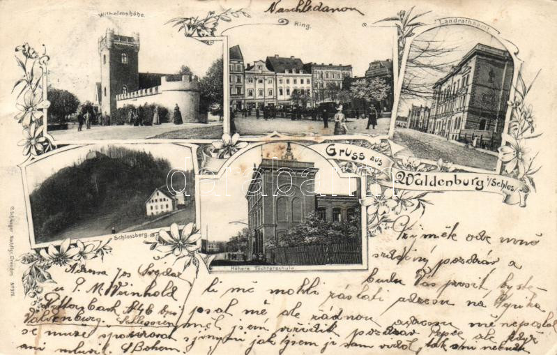 Walbrzych, Waldenburg in Schlesien, floral (Rb) https://www.darabanth.com/de/202-Fernauktion/202.0/Ansichtskarten/Polen~600105/Walbrzych-Waldenburg-in-Schlesien-floral-Rb~II801362