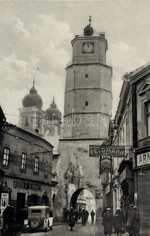 Trencsén, Rudolf Schaner és Feldmann üzletei, torony / shops, tower, a... https://www.darabanth.com/de/202-Fernauktion/202.0/Ansichtskarten/Slowakei~400007/Trencsen-Rudolf-Schaner-es-Feldmann-uzletei-torony-shops-tower-automobile~II802376