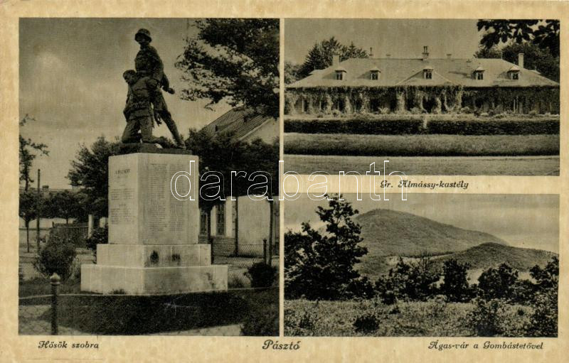 Pásztó, Hősök szobra, Almássy kastély, Ágasvár, Gombástető https://www.darabanth.com/de/202-Fernauktion/202.0/Ansichtskarten/Ungarn~400005/Paszto-Hosok-szobra-Almassy-kastely-Agasvar-Gombasteto~II757869