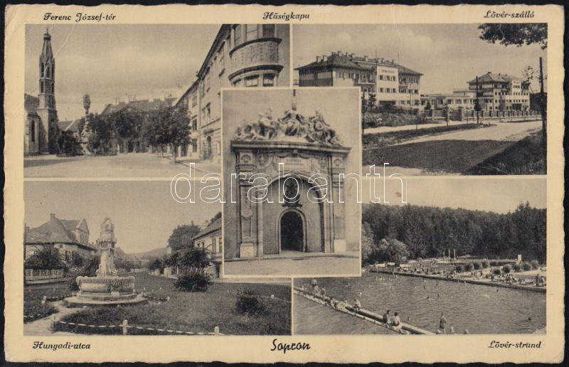 Sopron Lövér Szálló és strand, Hunyadi utca, Ferenc József tér, Hűségk... https://www.darabanth.com/de/202-Fernauktion/202.0/Ansichtskarten/Ungarn~400005/Sopron-Lover-Szallo-es-strand-Hunyadi-utca-Ferenc-Jozsef-ter-Husegkapu-EB~II732298