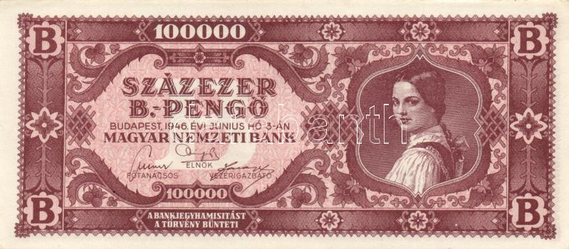 1945. 100.000P + 1946. 100.000MP + 1946. 100.000BP T:I,I- https://www.darabanth.com/de/202-Fernauktion/202.0/Numismatik/Ungarische-Banknoten~600008/1945-100000P-plus-1946-100000MP-plus-1946-100000BP-TI-I-~II802091