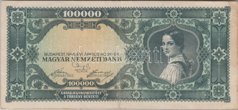 1946. 100.000P fázisnyomat, előlapi "SZÁZEZER MILPENGŐ" érté... https://www.darabanth.com/de/202-Fernauktion/202.0/Numismatik/Ungarische-Banknoten~600008/1946-100000P-fazisnyomat-elolapi-SZAZEZER-MILPENGO-ertekjelzes-nyomat-nelkul-TIII-RR~II805024
