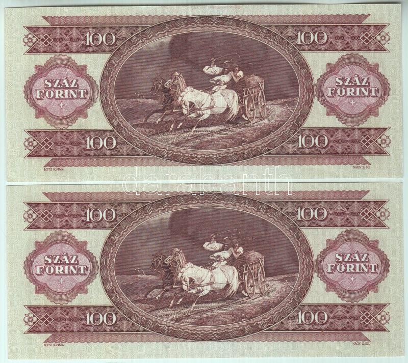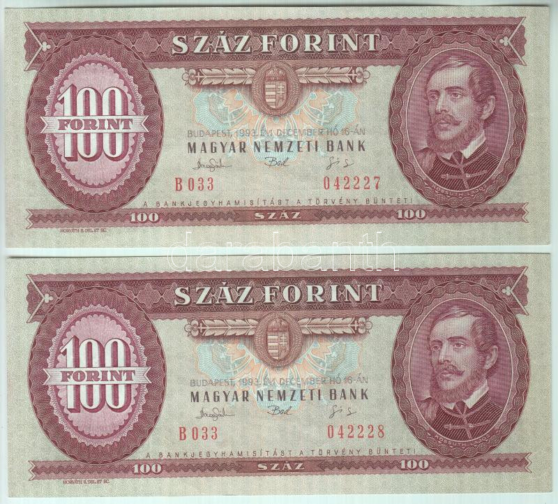 Beschreibung: 1993. 100Ft (2x) egymás utáni sorszámmal és nyomdai festékfoltokkal T:I,I-