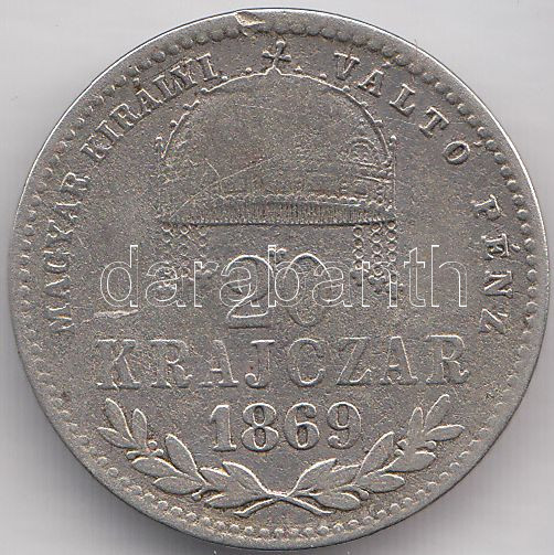 1869KB 20Kr Ag "Magyar Királyi Váltó Pénz" T:3 https://www.darabanth.com/de/202-Fernauktion/202.0/Numismatik/Ungarische-Munzen~600009/1869KB-20Kr-Ag-Magyar-Kiralyi-Valto-Penz-T3~II805400