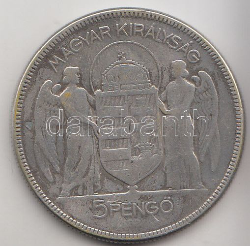 Beschreibung: 1930. 5P Ag "Horthy-jobbra" T:3