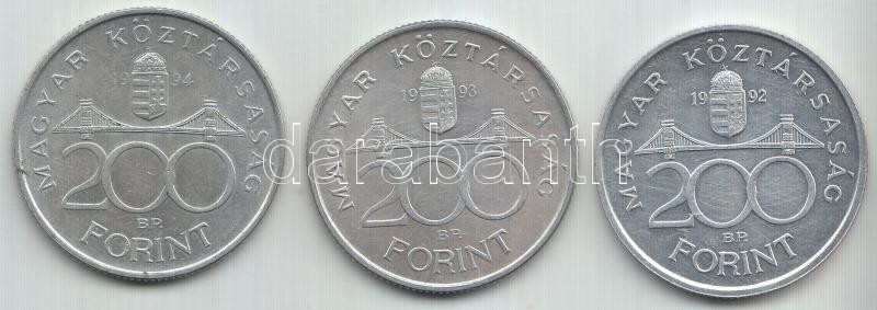 Beschreibung: 1992-1994. 200Ft Ag "MNB" (2xklf) + "Deák" (1x) T:2