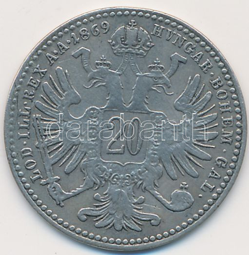 Austria 1869. 20 Kreuzer Ag C:VF https://www.darabanth.com/de/202-Fernauktion/202.0/Numismatik/Weltweit-Munzen~600013/Ausztria-1869-20Kr-Ag-T2--3Cbr3EAustria-1869-20-Kreuzer-Ag-CVF~II805397