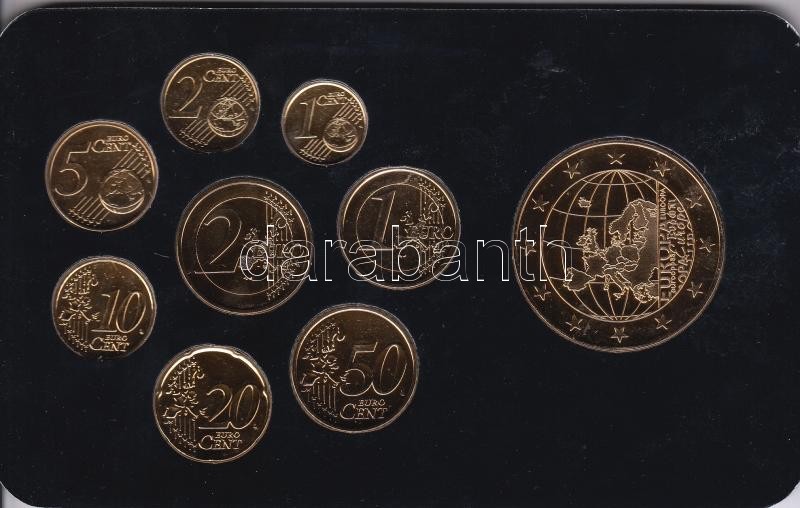Franciaország 1999-2004. 1c-2E Euro 8xklf aranyozva + aranyozott emlékérem "Presztízs érem szett" plasztiktokban T:1