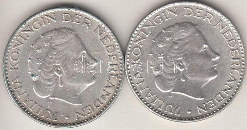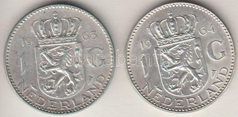 Netherlands 1963-1964. 1 Gulden Ag "Juliana" (2x) C:XF,VF