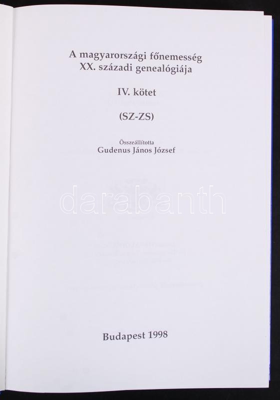 Gudenus János József: A magyarországi főnemesség XX. századi genealógiája IV. kötet (SZ-ZS). Bp., 1998, Heraldika Kiadó. Kiadói kartonált kötés, jó állapotban.