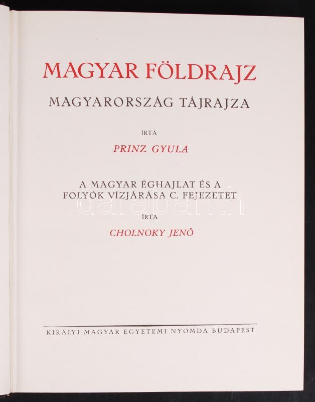 Prinz Gyula, Cholnoky Jenő, Gr. Teleki Pál, Bartucz Lajos: Magyar föld... https://www.darabanth.com/de/203-Fernauktion/203.0/Andere-Sammelgebiete/Bucher-Geschichte~200029/Prinz-Gyula-Cholnoky-Jeno-Gr-Teleki-Pal-Bartucz-Lajos-Magyar-fold-magyar-faj-I-IV-Reprint-~II812281