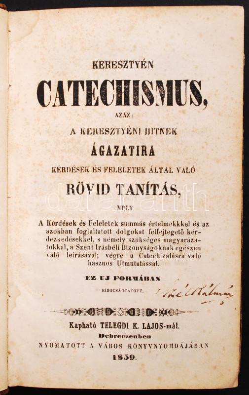 Beschreibung: Keresztyén Catechismus azaz a kersztyéni hitnek ágazataira kérdések és feleletek által való rövid tanítás.... Telegdi Lajos, 1859. Debrecen 333p. Félbőr kötésben