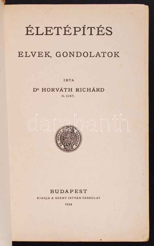 Dr. Horváth Richárd: Életépítés. Budapest 1934. Szent István Társulat.... https://www.darabanth.com/de/203-Fernauktion/203.0/Andere-Sammelgebiete/Bucher-Sonstige-Raritaten~200038/Dr-Horvath-Richard-Eletepites-Budapest-1934-Szent-Istvan-Tarsulat-Kis-szakadasokkal~II795428