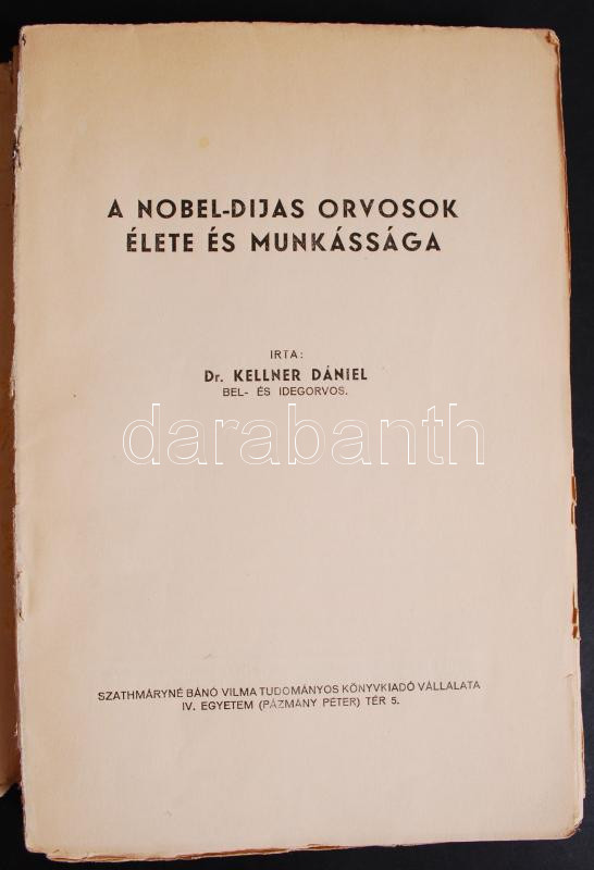 Kellner Dániel: A Nobel-díjas orvosok élete és munkássága Budapest, 19... https://www.darabanth.com/de/203-Fernauktion/203.0/Andere-Sammelgebiete/Bucher-Sonstige-Raritaten~200038/Kellner-Daniel-A-Nobel-dijas-orvosok-elete-es-munkassaga-Budapest-1939-271-o-Szetvalt-pa~II806926