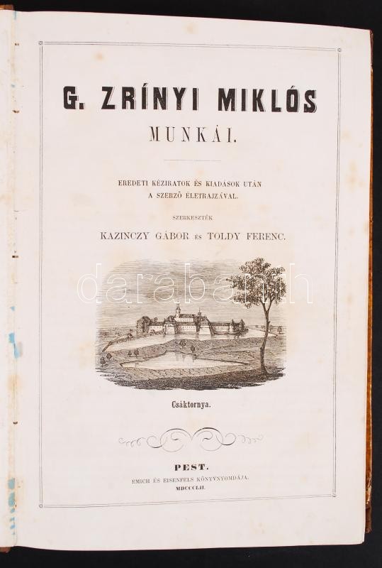 Pest, 1853. Emich. A címlapon fametszetű látképpel (Csáktornya) és Zrínyi rézmetszetű képével 420 + 312 hasáb. Korabeli félvászon kötésben