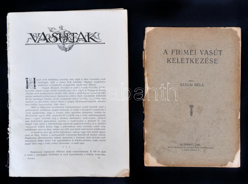 1928 Szalai Béla: A Fiumei vasút keletkezése 40p. (kissé megviselt) + ... https://www.darabanth.com/de/203-Fernauktion/203.0/Andere-Sammelgebiete/Drucksachen~200041/1928-Szalai-Bela-A-Fiumei-vasut-keletkezese-40p-kisse-megviselt-plus-egy-korabeli-toredek-a-v~II807293