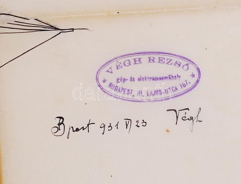 1931 Végh Rezső eredeti yacht tervrajz. Jelzett, apró szakadások, 100x... https://www.darabanth.com/de/203-Fernauktion/203.0/Andere-Sammelgebiete/Drucksachen~200041/1931-Vegh-Rezso-eredeti-yacht-tervrajz-Jelzett-apro-szakadasok-100x70-cm~II749993