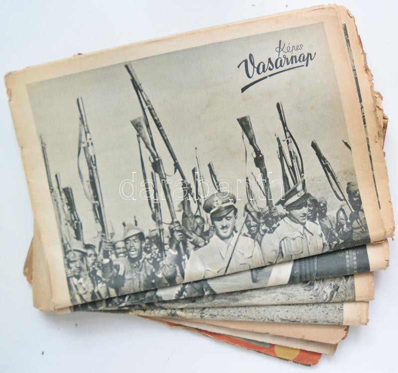 1937-1941 10 db Képes Vasárnap újság, apró szakadásokkal https://www.darabanth.com/de/203-Fernauktion/203.0/Andere-Sammelgebiete/Drucksachen~200041/1937-1941-10-db-Kepes-Vasarnap-ujsag-apro-szakadasokkal~II802269