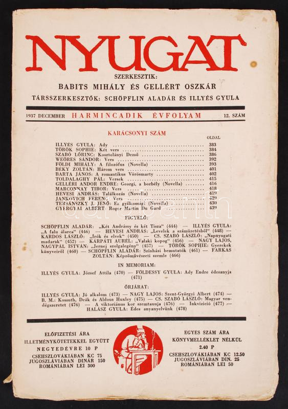 1937 Nyugat 1937 december, 30. évfolyam, 12. szám https://www.darabanth.com/de/203-Fernauktion/203.0/Andere-Sammelgebiete/Drucksachen~200041/1937-Nyugat-1937-december-30-evfolyam-12-szam~II810522