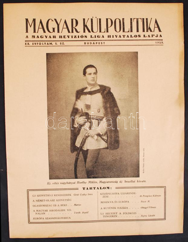 1940 Magyar Külpolitika. A Magyar Revíziós Liga hivatalos lapja. XX év... https://www.darabanth.com/de/203-Fernauktion/203.0/Andere-Sammelgebiete/Drucksachen~200041/1940-Magyar-Kulpolitika-A-Magyar-Revizios-Liga-hivatalos-lapja-XX-evf-5-szam~II806477