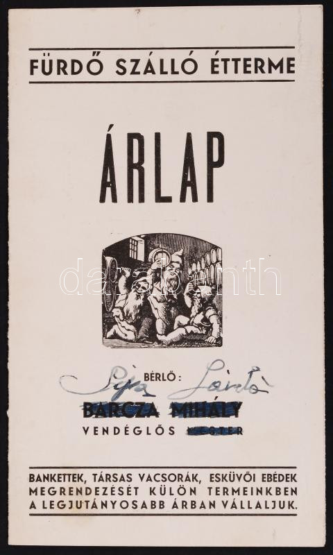 cca 1930 Kiskunfélegyházi Fürdő Szálló étterme étlap https://www.darabanth.com/de/203-Fernauktion/203.0/Andere-Sammelgebiete/Drucksachen~200041/cca-1930-Kiskunfelegyhazi-Furdo-Szallo-etterme-etlap~II781131
