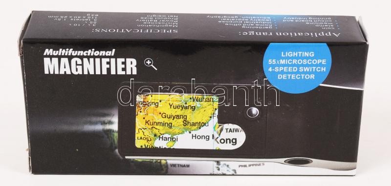 Beschreibung: Bontatlan, új nagyító beépített ledes világítással, 55x mini mikrószkóppal, UV lámpával / Magnifier with microscope and LED