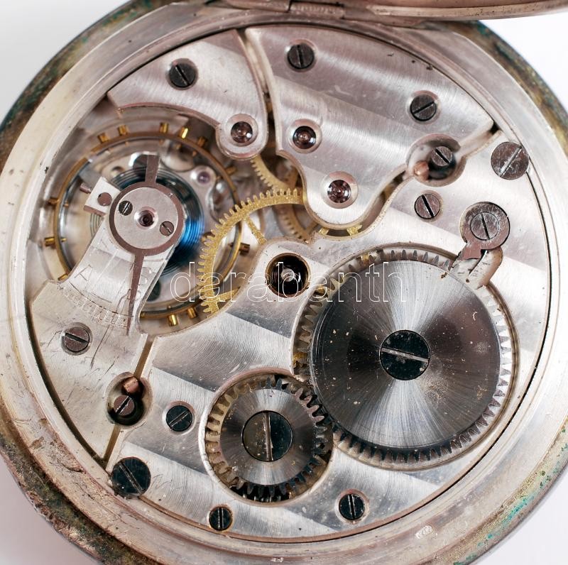 Beschreibung: Chronometer ezüst (Ag.) tokos zsebóra, másodpercmutatós, jelzett, hátul monogramos, nem működik, bruttó:72 g