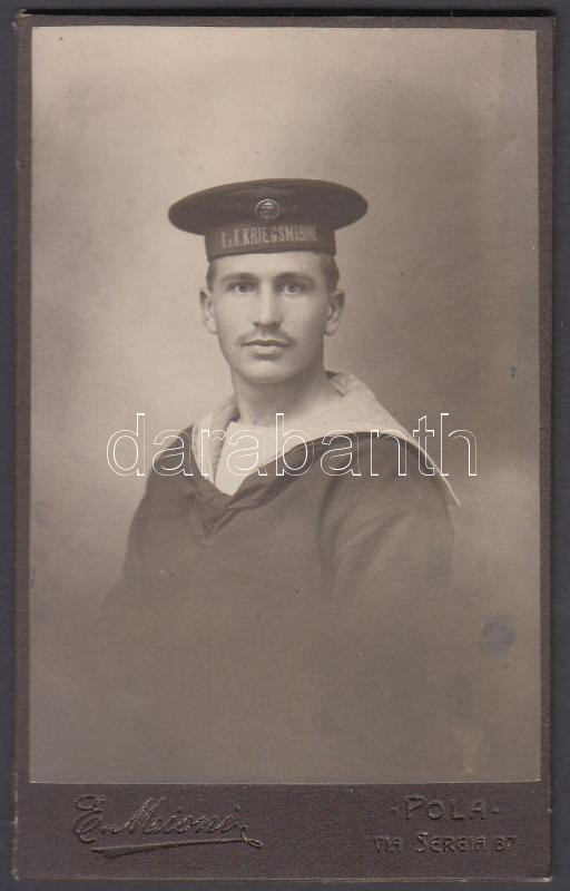 cca 1910 K.u.K. Kriegsmarine Pola tengerészt ábrázoló keményhátú fotó,... https://www.darabanth.com/de/203-Fernauktion/203.0/Andere-Sammelgebiete/Militaria~200023/cca-1910-KuK-Kriegsmarine-Pola-tengereszt-abrazolo-kemenyhatu-foto-6x10-cm~II806883