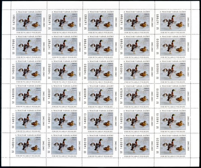 Beschreibung: 2002 A magyar vadvilágért bélyeg 35-ös teljes ív szedéshibás felirattal "MAGYAR VADAILÁGÉRT" / For Hungarian wildlife, charity stamp sheet of 35, all stamps with error
