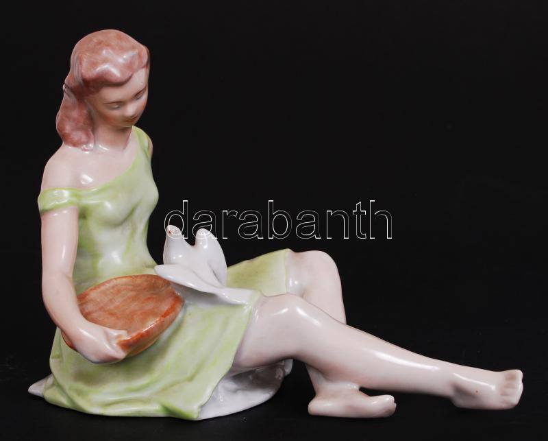 Hamupipőke. Kézzel festett, jelzett Drasche porcelán figura B.A. mesterjeggyel (a galambon apró lepattanás) /