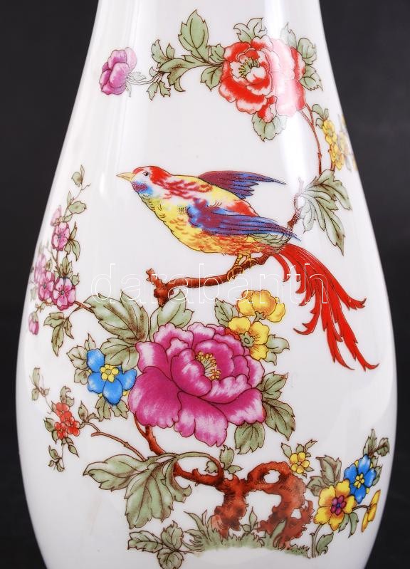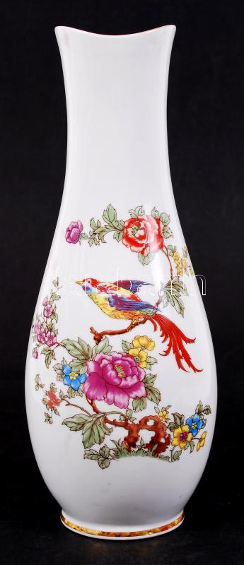 Beschreibung: Hollóházi madaras-virágos nagyméretű porcelán váza, matricás, jelzett, hibátlan, m:31 cm / Hollóházi chinaware vase