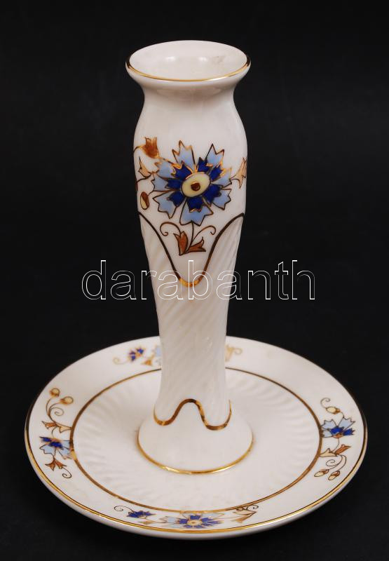 Beschreibung: Kézzel festett, búzavirágokkal díszített, hibátlan, jelzett, Zsolnay porcelán gyertyatartó, aranyozott szegéllyel /