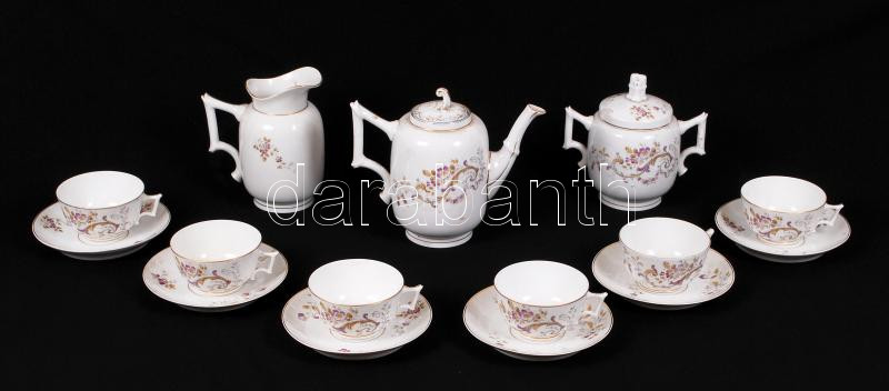 Beschreibung: XIX. sz közepe: Hibátlan és komplett festett és aranyozott porcelán teáskészlet /