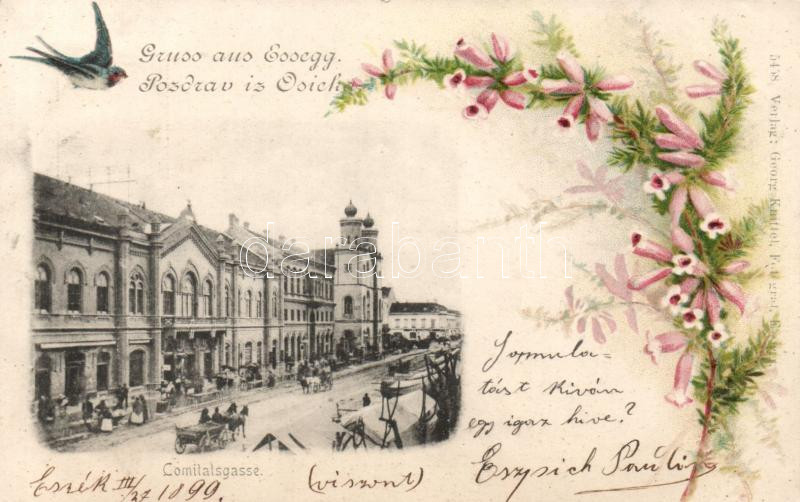 1899 Eszék, Essegg, Osijek; Comitatsgasse / street, synagogue; floral ... https://www.darabanth.com/de/203-Fernauktion/203.0/Ansichtskarten/Kroatien~400011/1899-Eszek-Essegg-Osijek-Comitatsgasse-street-synagogue-floral-litho~II807892