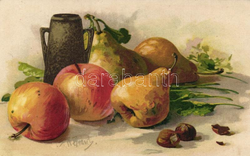 Table still life, artist signed litho https://www.darabanth.com/de/203-Fernauktion/203.0/Ansichtskarten/Kunstlerkarten~600362/Table-still-life-artist-signed-litho~II764658